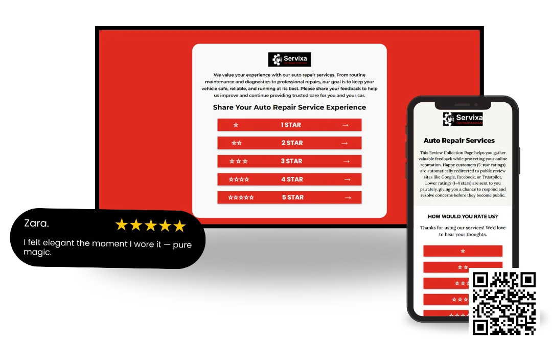 Satisfied customers can be directed to your Google Business Profile or platforms like Trustpilot for public feedback. Less satisfied users are guided to submit private feedback through a form, allowing issues to be resolved before becoming public.