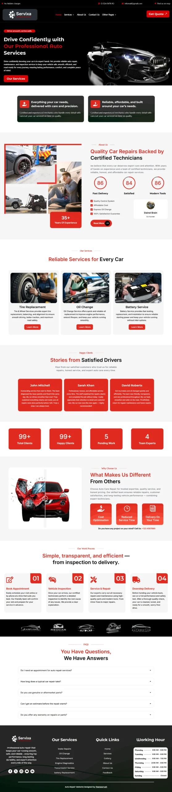 Launch a structured, conversion-focused auto repair website in hours. Built specifically for car service and mechanic shops, this WordPress template is designed for local visibility, fast performance, and lead generation — not just visual design.
