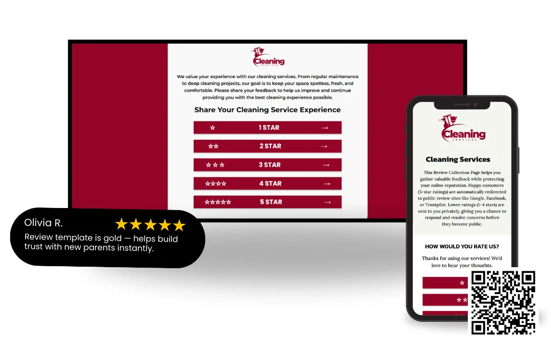 Nothing builds trust faster than proof of reliable service. Clients want assurance that your cleaning business delivers spotless results — and reviews do exactly that.