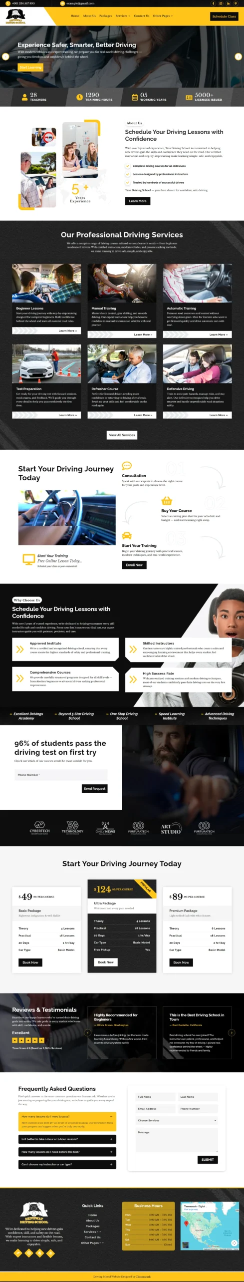 While specifically designed for Driving Schools, the layout is flexible enough to be easily customized for Motorcycle Training, Defensive Driving, or any local education business.