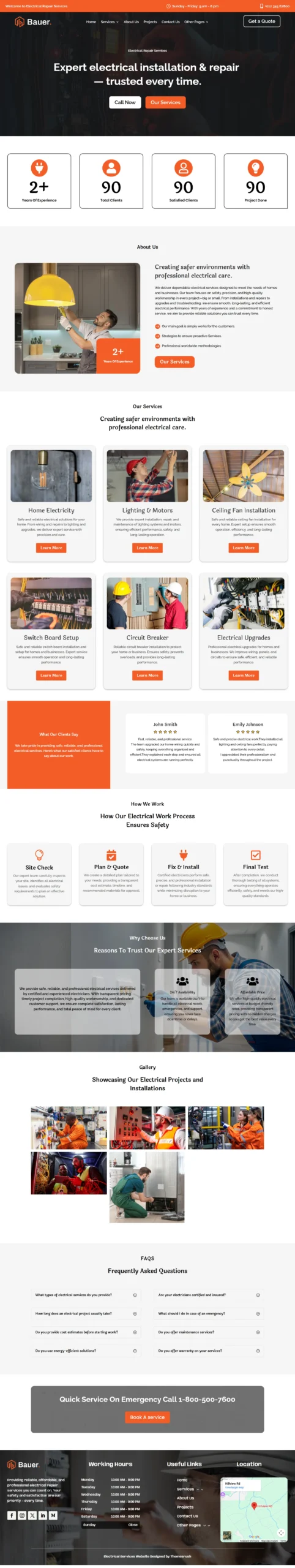 This WordPress Divi template is built specifically for electricians, electrical contractors, and home service providers who want a polished, professional online presence. The layout highlights your services, projects, and expertise while making it easy for clients to contact you and request service.