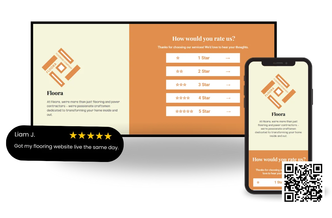 While specifically designed for flooring, the layout is flexible enough to be easily customized for tiling, renovation, or any local home improvement business.
