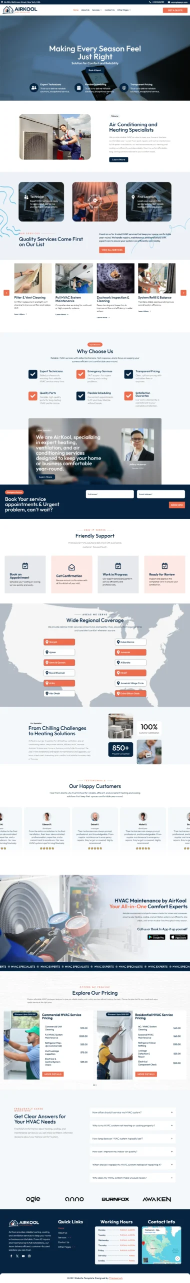 Instead of relying on one generic services page, this template includes dedicated service and city-based pages. That structure increases your chances of ranking for searches like “AC Repair in [City]” and “Heating Installation Near Me.”