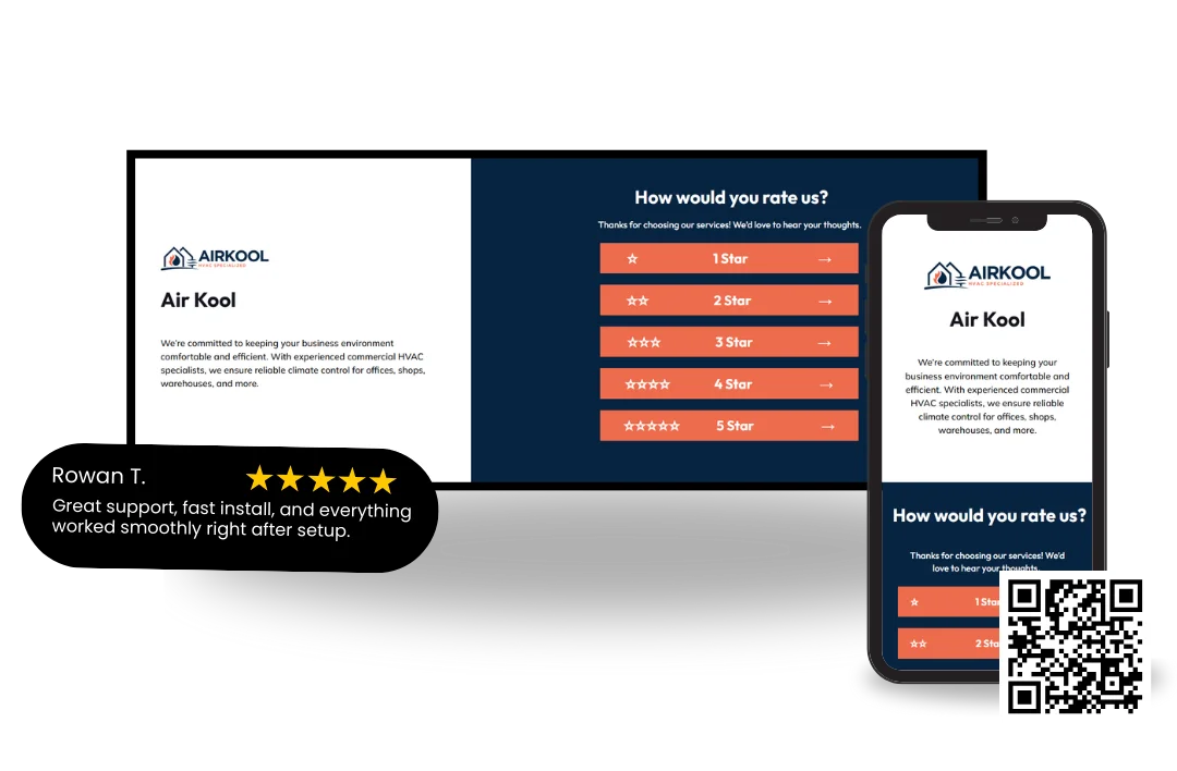 Satisfied customers can be directed to your Google Business Profile or platforms like Trustpilot for public feedback. Less satisfied users are guided to submit private feedback through a form, allowing issues to be resolved before becoming public.