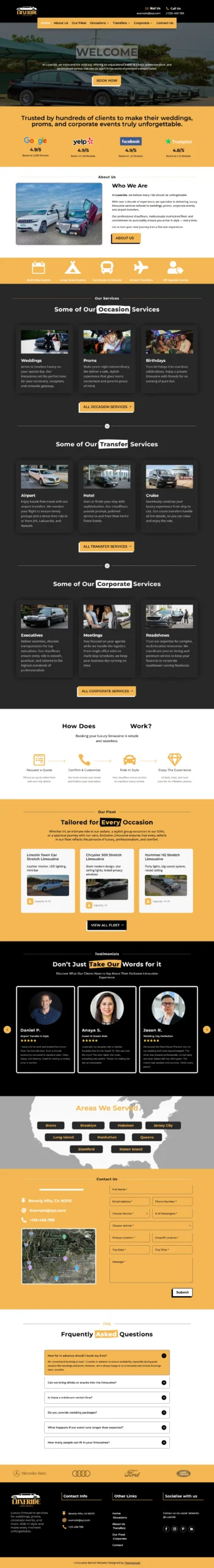 Instead of relying on one generic services page, this template includes dedicated limousine service pages and city-based location pages. This structure increases your chances of ranking for searches like “Limousine Service in [City]” and “Limo Near Me.”