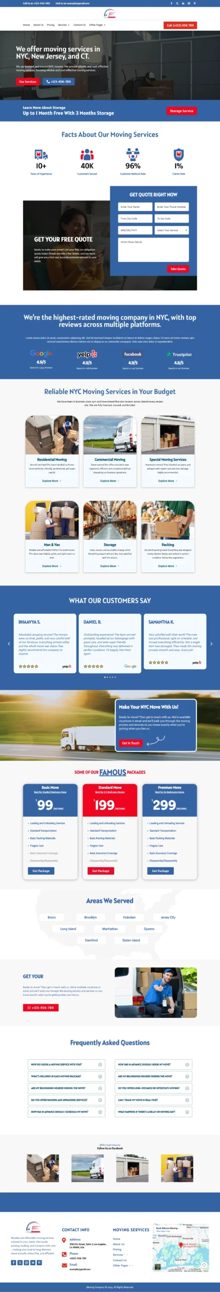 Instead of relying on one generic services page, this template includes dedicated service and city-based pages. That structure increases your chances of ranking for searches like “Moving Service in [City]” and “Packing & Relocation Near Me.”