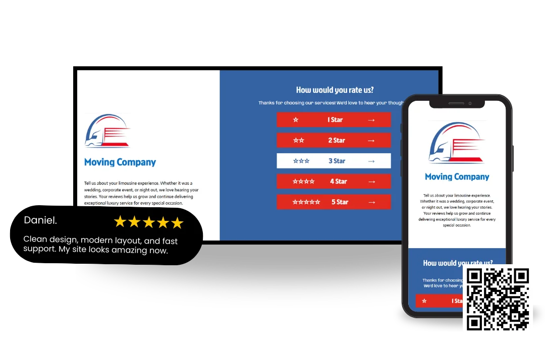 Satisfied customers can be directed to your Google Business Profile or platforms like Trustpilot for public feedback. Less satisfied users are guided to submit private feedback through a form, allowing issues to be resolved before becoming public.