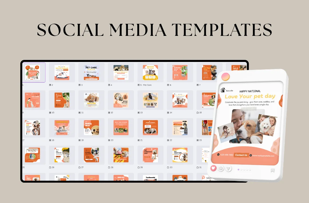 These pet care social media templates help businesses maintain a professional and consistent online presence. The designs are created for easy posting of service updates, promotions, and customer trust messages without spending time on design work.