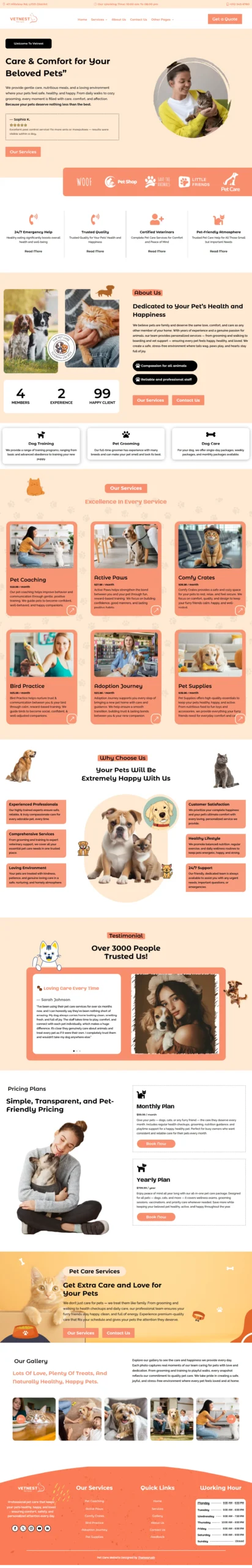Launch a structured, conversion-focused Pet Care website in hours. Built specifically for pet services, this WordPress template is designed for local visibility, fast performance, and lead generation — not just visual design.