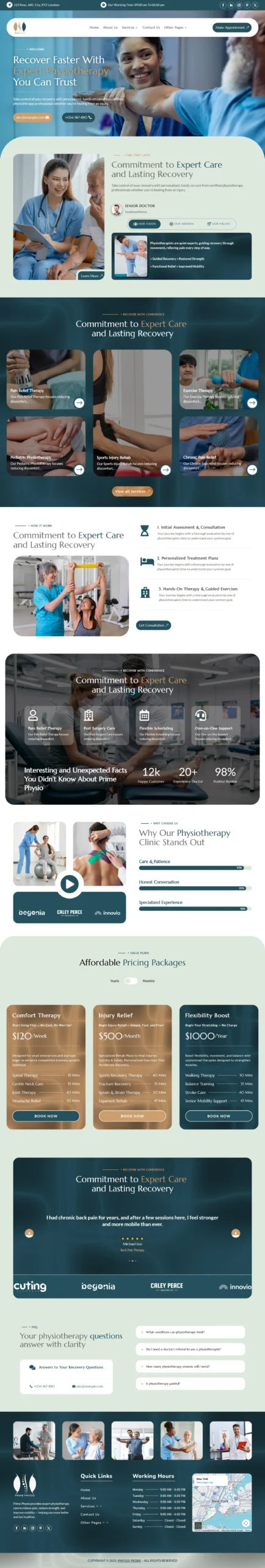 Instead of relying on one generic services page, this template includes dedicated service and city-based pages. That structure increases your chances of ranking for searches like “Physiotherapy in [City]” and “Sports Injury Treatment Near Me.”
