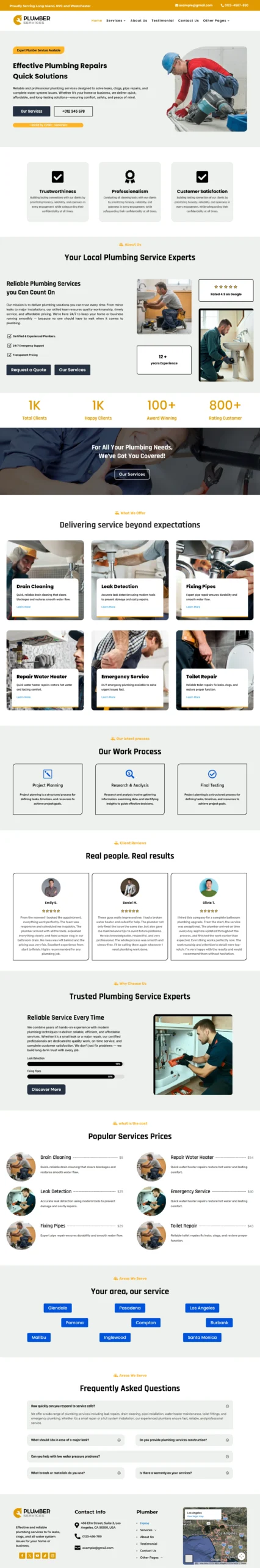 Launch a structured, conversion-focused plumber website in hours. Built specifically for plumbing and drain service companies, this WordPress template is designed for local visibility, fast performance, and lead generation — not just visual design.
