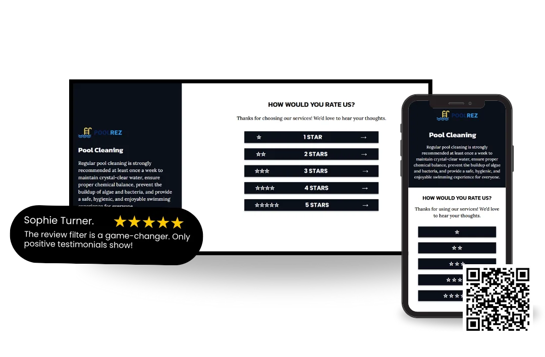 While specifically designed for pool cleaning, the layout is flexible enough to be easily customized for pool repair, installation, or any local service business.