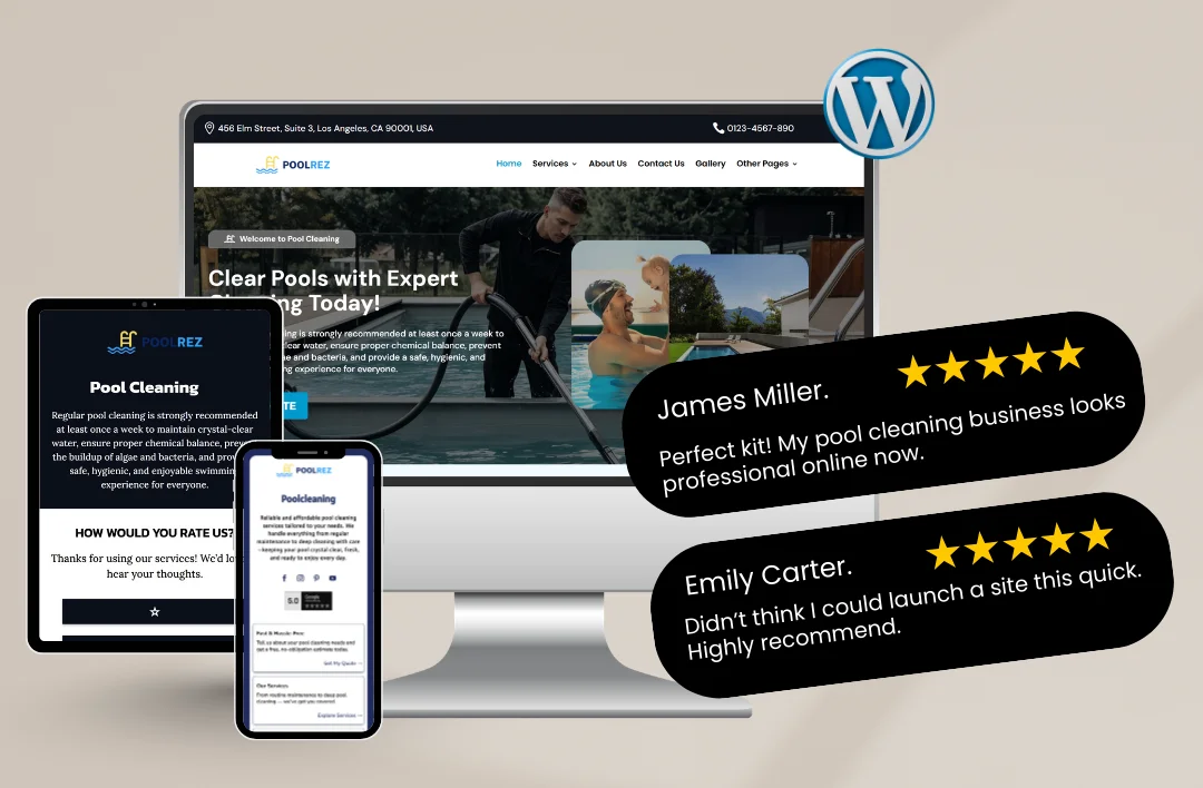 Launch a structured, conversion-focused Pool Cleaning website in hours. Built specifically for pool maintenance and cleaning companies, this WordPress template is designed for local visibility, fast performance, and lead generation — not just visual design.