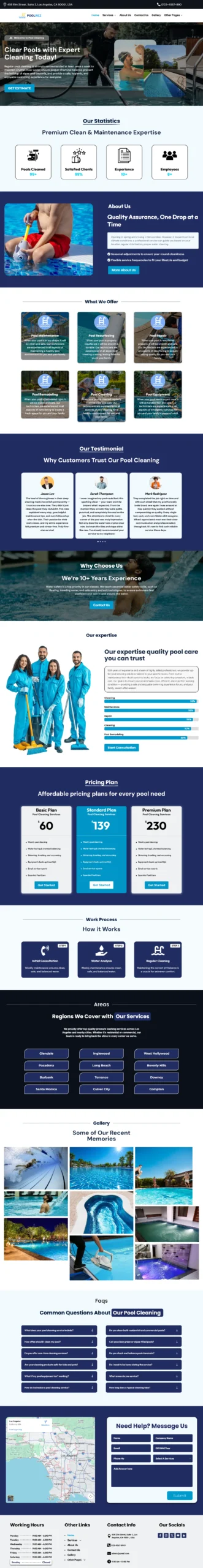 Pool cleaning searches happen on mobile, often during urgent situations. This template is optimized for speed and clean structure to reduce bounce and support ranking performance.