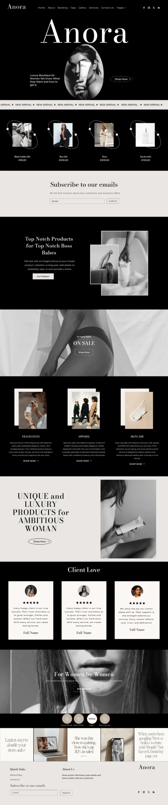 Launch your professional Anora eCommerce website in hours. Built for modern online stores — no coding, just customize and start selling.