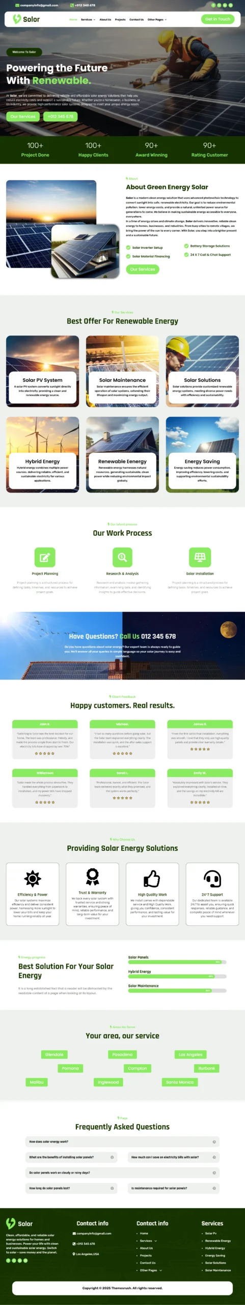 Launch a structured, conversion-focused Solar website in hours. Built specifically for solar panel and renewable energy contractors, this WordPress template is designed for local visibility, fast performance, and lead generation — not just visual design.