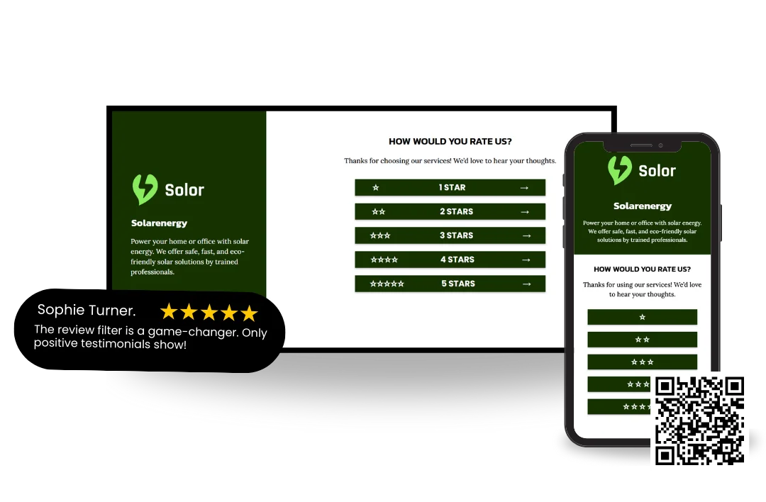 Satisfied customers can be directed to your Google Business Profile or platforms like Trustpilot for public feedback. Less satisfied users are guided to submit private feedback through a form, allowing issues to be resolved before becoming public.
