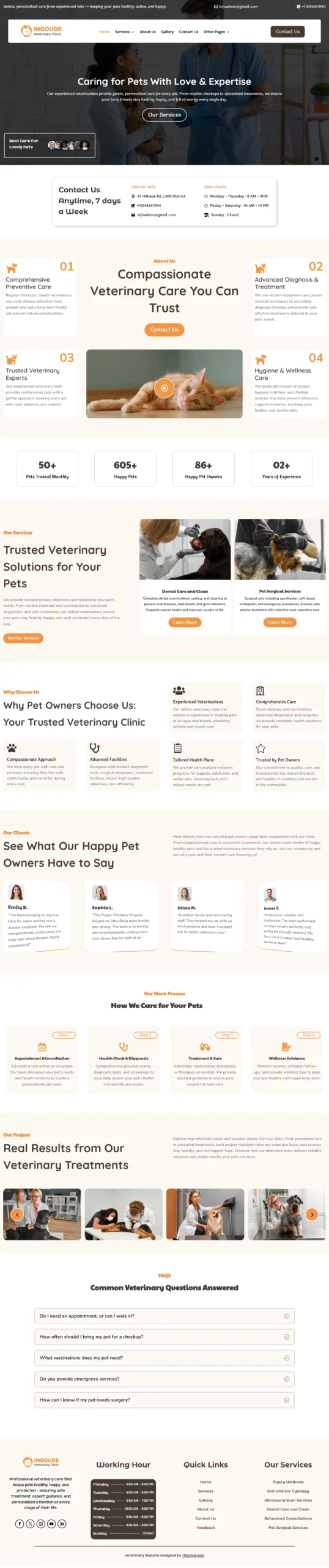 Launch a structured, conversion-focused Veterinary website in hours. Built specifically for animal clinics and pet care providers, this WordPress template is designed for local visibility, fast performance, and appointment bookings — not just visual design.