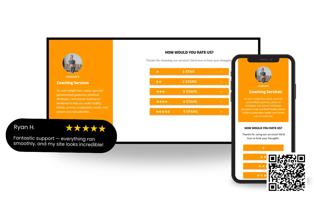 Satisfied customers can be directed to your Google Business Profile or platforms like Trustpilot for public feedback. Less satisfied users are guided to submit private feedback through a form, allowing issues to be resolved before becoming public.